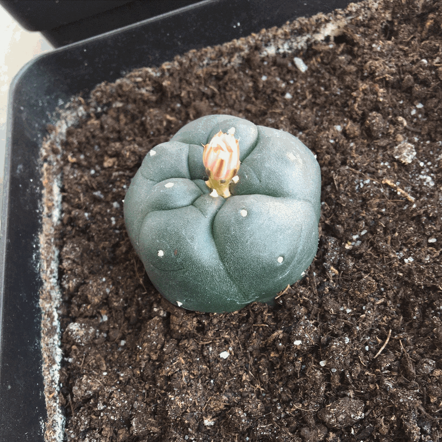 Das erste mal blüht mein Lophophora williamsii, welchen ich schon seid mehr als 10 Jahren besitze!