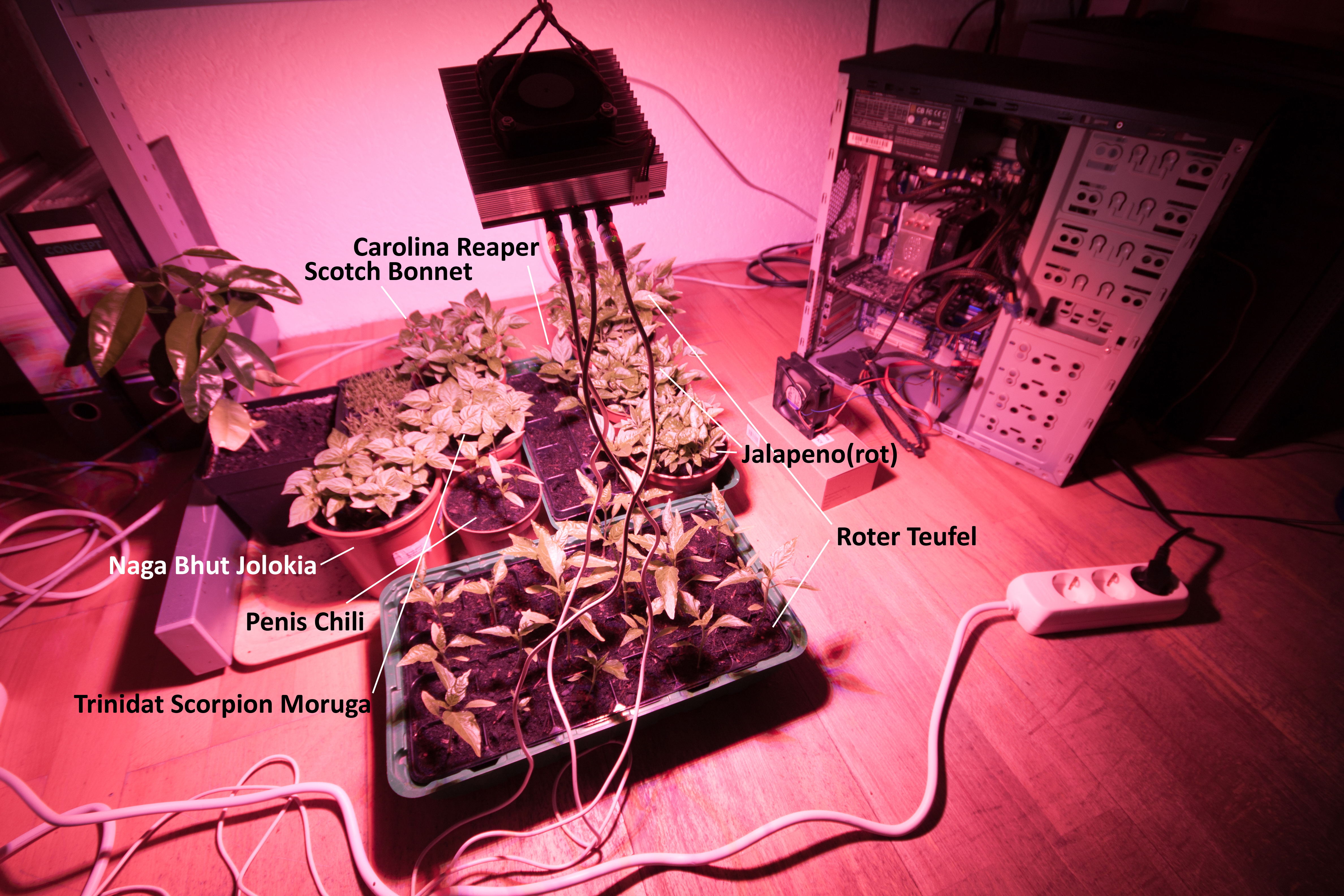 Die Rechnerwärme wird direkt zu den Chilies geleitet und das Licht wird auch von mir genutzt.
