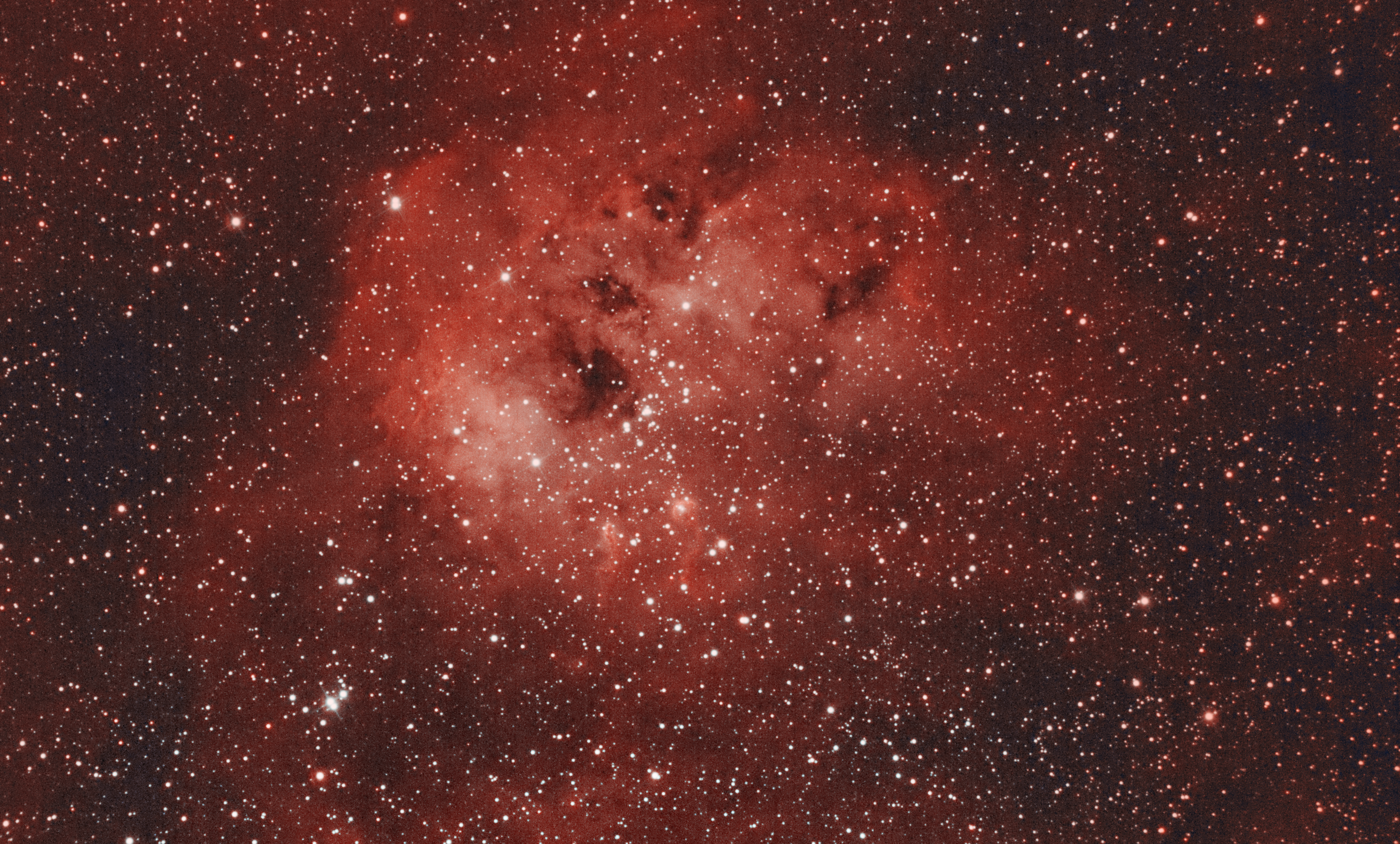 Leider ein paar rote Höfe um helle Sterne eingefangen aufgrund des stark reflektierenden HA/OIII Filters.